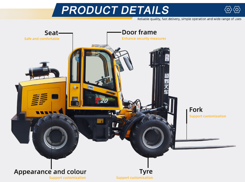 This versatile 2-ton off-road forklift delivers power and reliability where you need it most, from construction sites to lumber yards. Customize critical aspects like the power source (e.g., diesel), operator cabs, and safety features to match your local environment and operational demands. Key benefits include superior traction on loose or muddy surfaces, minimized downtime thanks to a robust build and accessible service support, and a lower total cost of ownership for a swift return on your investment.